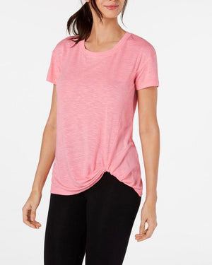 Ideology Womens Knot-Front Active Wear T-Shirt