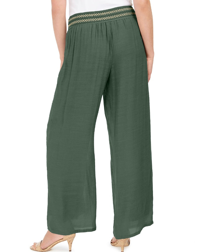 Jm Collection Metallic-Detail Wide-Leg Gauze Pants - Size: Large.
